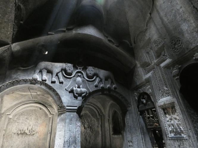 Посещение монастыря Гегард. Монастырь был основан в IV веке на месте священного источника, берущего начало в пещере. Поэтому изначально он получил название Айриванк, что означает "пещерный монастырь". Современное названия Гегард означает копье, которым, по преданию, римский легионер пронзил Христа. Изначально копье хранилось в этом монастыре, а ныне выставлено в музее сокровищнице Эчмиадзина. Комплекс состоит из главной церкви Католике, притвора, высеченных в скале двух церквей, часовни и храма Св. Богородицы. В первом пещерном храме из скалы бьет холодный родник. Считается, что его святая вода исцеляет от болезней и дает красоту. Второй уровень монастыря славиться свое акустикой. Монастырский комплекс внесён в список объектов Всемирного культурного наследия ЮНЕСКО.