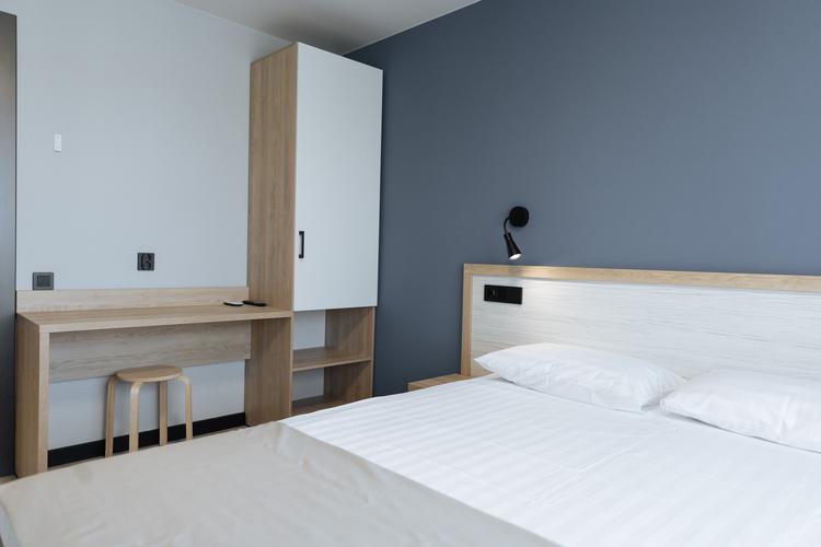 В номере есть всё необходимое для комфортного пребывания: вместительный шкаф для одежды, прикроватные тумбочки для мелочей и удобные розетки для зарядки устройств. Для приятного досуга — телевизор с функцией Smart TV, а благодаря стабильному интернету вы останетесь на связи или сможете посмотреть любимый фильм онлайн. И конечно, в номере предусмотрен фен — чтобы привести себя в порядок было так же легко, как дома.